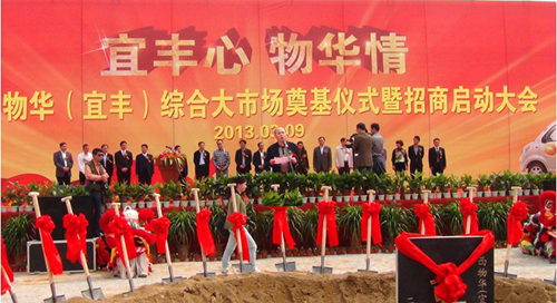 3月9日,由我司擔(dān)負(fù)施工建設(shè)的——江西宜豐物華綜合大市場項(xiàng)目奠基儀式暨招商啟動(dòng)大會在宜豐隆重舉行,公司總經(jīng)理姜云鵬出席了開工典禮并發(fā)言。