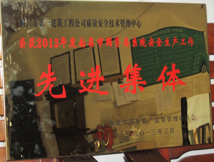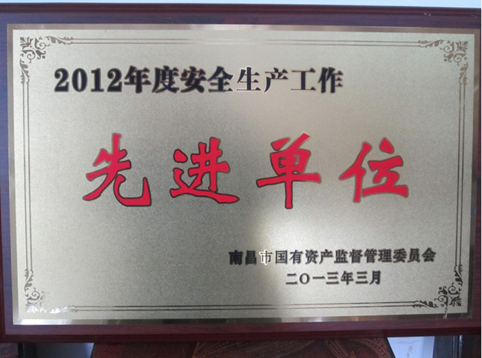 2012年我司安全生產(chǎn)工作在公司領(lǐng)導(dǎo)的高度重視和正確領(lǐng)導(dǎo)下,在全司各部門的共同努力下,被南昌市國資委授予“2012年度國資委系統(tǒng)安全生產(chǎn)工作先進(jìn)單位”。我司質(zhì)量安全技術(shù)管理中心(暨工程項(xiàng)目管理中心)也被國資委授于“2012年度國資委安全生產(chǎn)工作先進(jìn)集體”。同時(shí),我司蔣建平、李華兩位同志分別被授于“2012年度南昌市安全生產(chǎn)工作先進(jìn)個(gè)人”及“2012年度國資委安全生產(chǎn)工作先進(jìn)個(gè)人”。