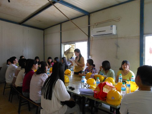 會議最后,項(xiàng)目部青年員工黃玄為大家傳授建筑工地安全常識,勞動防護(hù)用品安全帽、安全帶的使用及施工現(xiàn)場安全須知,使全體青年員工明白在強(qiáng)調(diào)質(zhì)量第一、工期第一的同時,還必須一直強(qiáng)調(diào)安全第一。