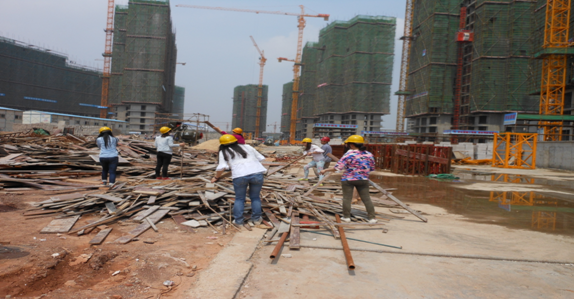 活動現(xiàn)場的青年員工們,秉承奉獻(xiàn)、友愛、互助、進(jìn)步的精神,在項(xiàng)目施工現(xiàn)場搬運(yùn)模板及處理廢棄鋼筋,勞動中大家不怕臟、不怕累、干勁十足,與施工員們肩并肩同勞動,親身體驗(yàn)農(nóng)民工用汗水和智慧為建筑事業(yè)付出的艱辛。