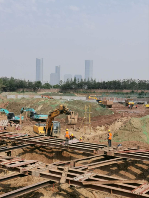 自2月28日復工以來,0728項目部積極組織復工復產(chǎn),堅持一邊嚴格疫情防控,一邊積極組織施工生產(chǎn),克服重重困難,科學管理,采用沖擊錘除障,反循環(huán)樁機成孔的方法解決了直接影響后期冠梁和擋土墻施工的三經(jīng)路支護樁除障工作;采取提前重修施工道路和提前完成沖洗設備的安裝的方法,同步完成原施工道路下40多根未施工的樁和其他樁基工作;采用平行分階段施工,使基坑支護鋼支撐工程進度得到保證;采用挖掘機作為材料運輸機具,確保了冠梁和擋墻施工材料運輸順利進行;通過重新規(guī)劃打樁順序,合理安排,使樁基施工提前完成施工任務……解決了施工過程中一系列的重點難點工作,為后期工程的順利進行打下了堅實的基礎。